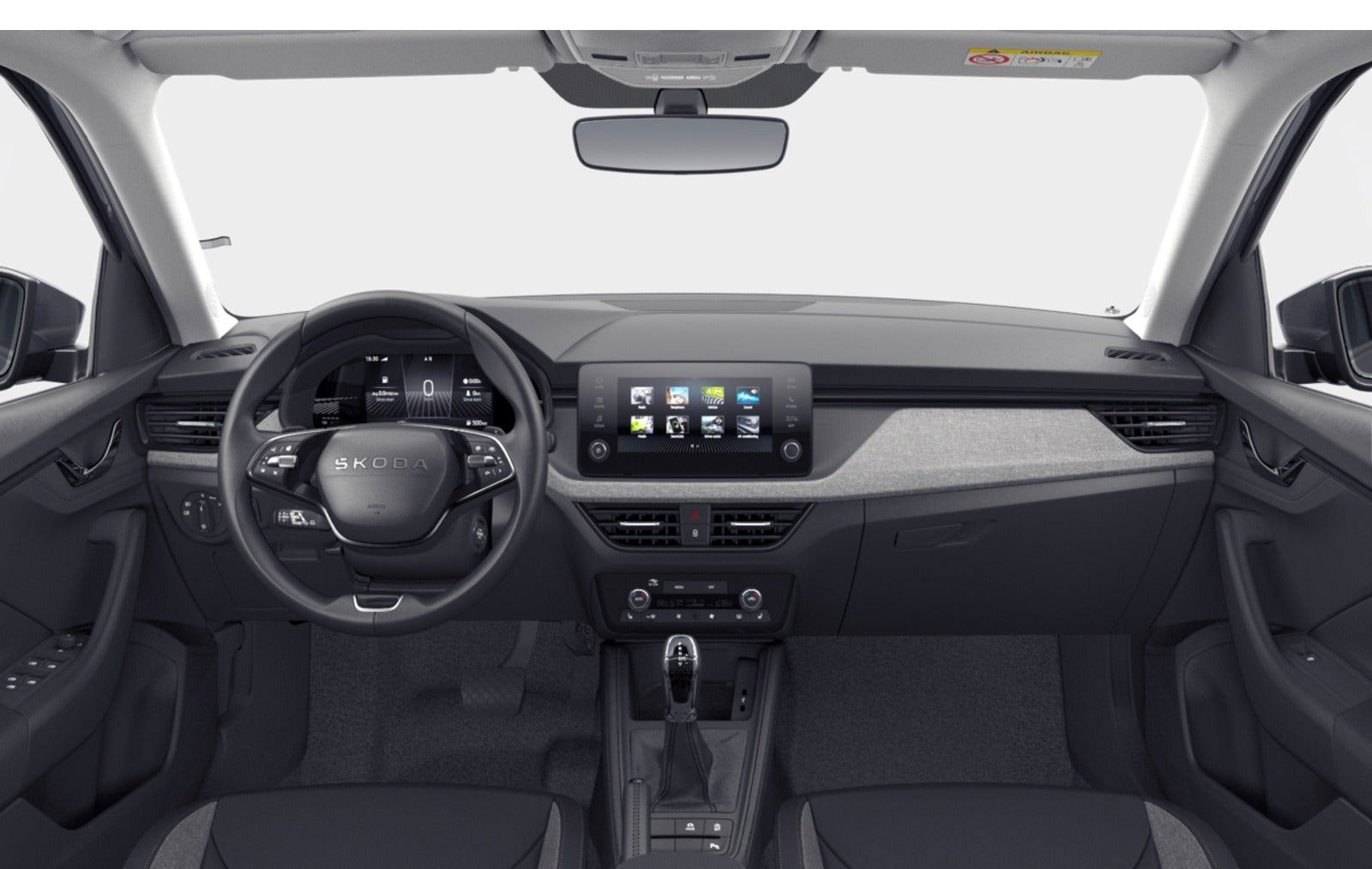 UDVALGT STANDARDUDSTYR: - 16" alufælge "CORTADERO" - 2-eget multifunktionslæderrat m/varme - 8,25" Skoda Infotainment inkl. trådløst Apple Carplay - 8" digitalt display - Adaptiv fartpilot - Bakkamera - Climatronic klimaanlæg - 2-zoner - El-indfældbare sidespejle med varme |